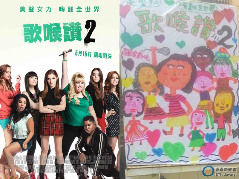 ▲▼台南全美戲院曝光《歌喉讚2》手繪電影海報,瞬間引發網友瘋傳。(圖/UIP提供、翻攝自今日全美戲院粉絲團)