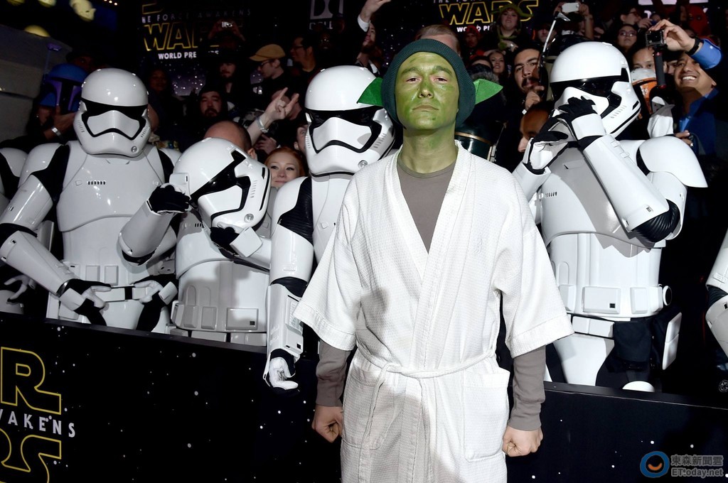 喬瑟夫高登李維日前參加《星際大戰:原力覺醒》首映會,當全場都穿著華麗禮服、西裝,他以超級「樸素」的打扮現身。穿咖啡色圓領t,外面罩上白色浴袍,頭上戴著綠色的毛線帽,左右各黏著一片耳朵,原來是扮成電影的角色尤達大師,有網友看了之後表示,他看起來很像《哈比人》裡的咕嚕,也有人認為他像是生病的藍色小精靈,意外引起討論。